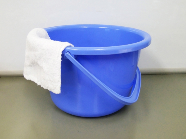バケツの中にタオルを入れると、水はねや音を軽減できます。