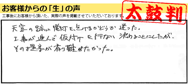 ホームお客様の声秦野市F・K様(秦野市尾尻:トップライト撤去、屋 .... F・K様(秦野市尾尻:トップライト撤去、屋根修繕他) 2026.03.23 クリックで拡大 クリックで拡大 お客様コメント天窓の跡に電灯を点けるかどうか迷った。 工事が進んで仮付けを行ない決めることにしたが、その提案が有難かった。 施工前、施工後の写真 次の記事へ 一覧に戻る Tweet